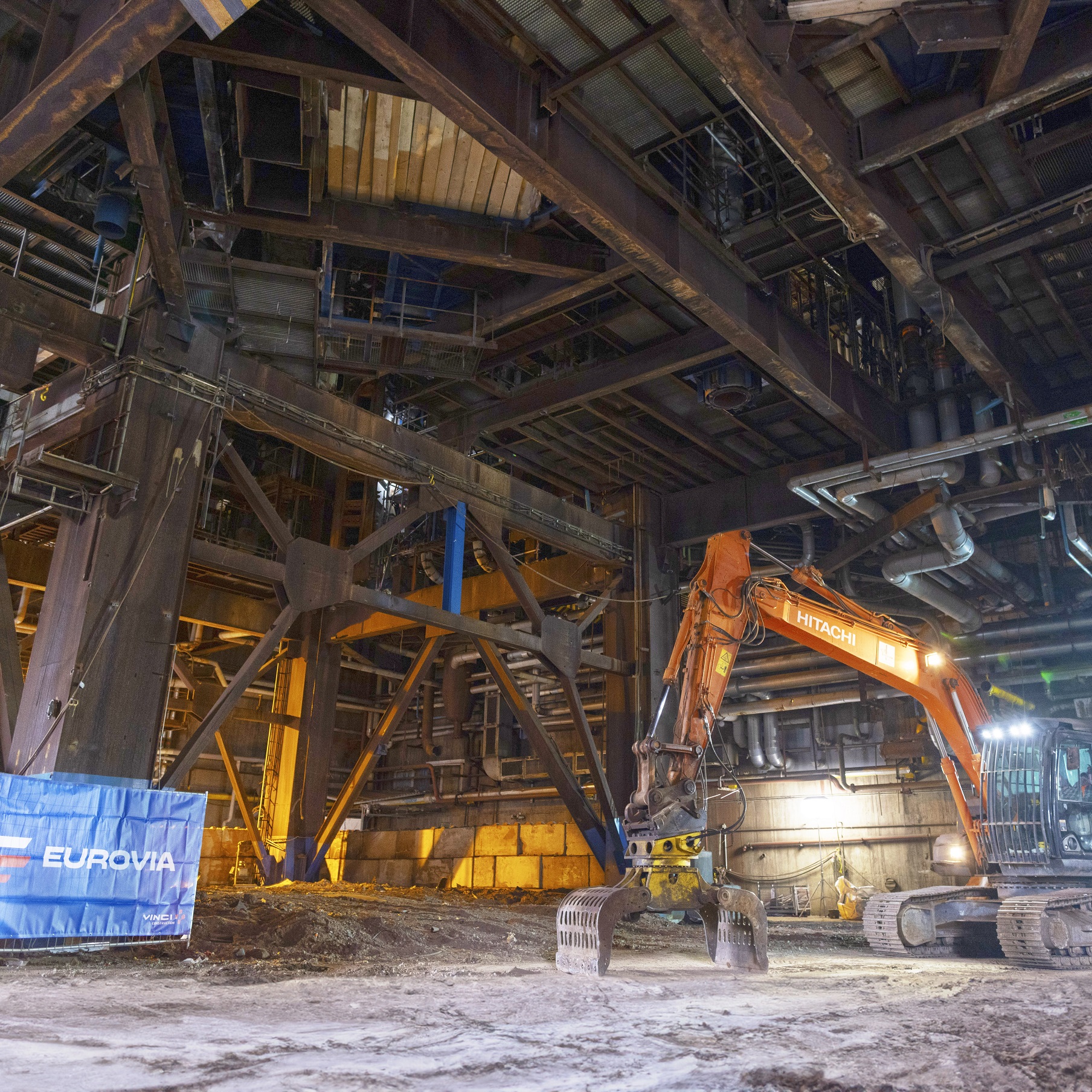 Im Auftrag der Berliner Energie und Wärme AG (ehemals Vattenfall Wärme Berlin) führt die EUROVIA Zweigstelle Umwelt & Recycling in einer ARGE Abbrucharbeiten am Heizkraftwerk Klingenberg in Berlin durch. Deutschlandweit ist die Zweigstelle tätig und übernimmt Arbeiten im Bereich Kampfmittelräumung, Abbruch und Bodensanierung für interne und externe Auftraggeber. Mit dem hochkomplexen Projekt leistet sie damit einen großen Beitrag zur Reduzierung umweltschädlicher Emissionen und schafft Platz für Zukunftstechnologien. Zu der ARGE gehören noch Mende Schornsteinbau GmbH & Co. KG und Sven Hartenstein Industrieabbruch GmbH.