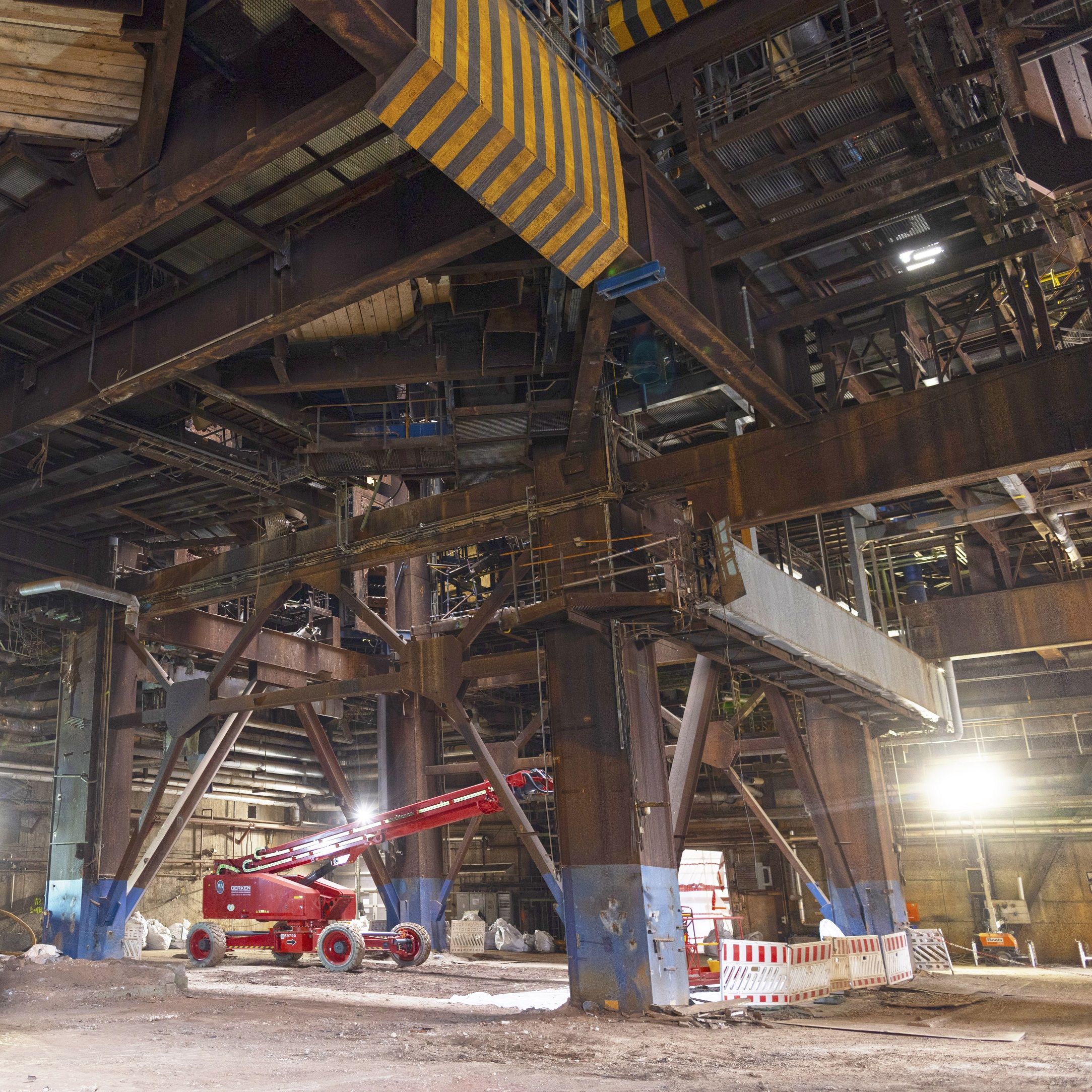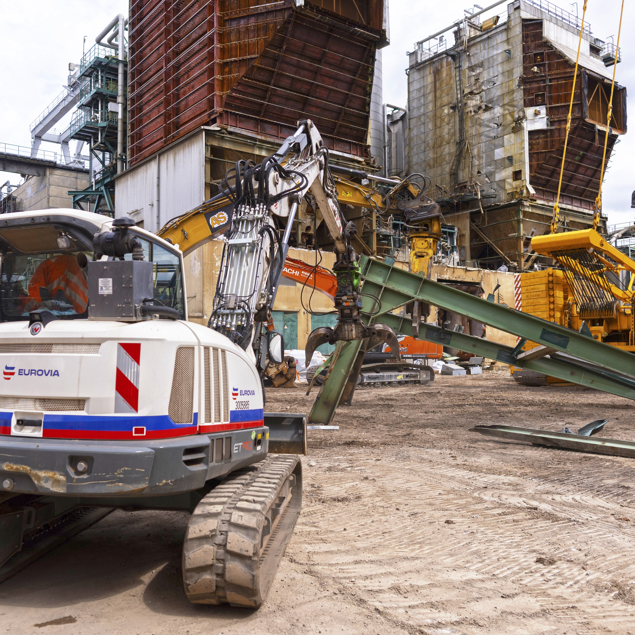 Für die Arbeiter auf der Baustelle bedeutet das eine sehr kleinteilige Arbeit. Bei dem Kesselhaus wurden beispielsweise beide der rund 40 Meter hohen Kessel durch Schweißbrennen in kleine Einzelteile zerlegt und abtransportiert. Sechs Monate haben die Arbeiten für den ersten Kessel gedauert, die Arbeiten am zweiten Kessel sind seit Ende Juli 2024 nahezu abgeschlossen. Rund 8.000 Tonnen Stahl sind im Kesselhaus insgesamt verbaut – eine Menge Arbeit also.