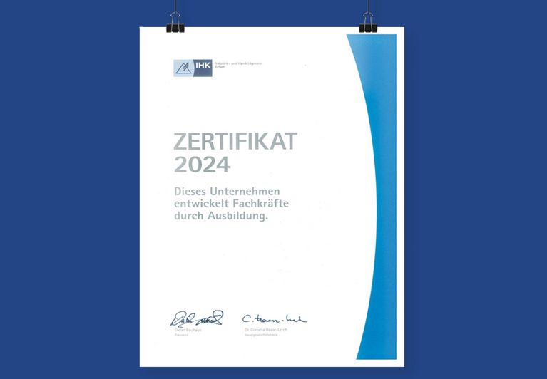 Die Industrie- und Handelskammer Erfurt bestätigt auch für 2024 hervorragende Ausbildungsbedingungen bei der EUROVIA Niederlassung Weimar.