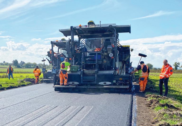Heute wurde auf der L 1141, Löchgau-Kleinsachsenheim, in Baden-Württemberg im Rahmen eines Pilotprojektes von der EUROVIA Niederlassung Stuttgart temperaturreduzierter Asphalt eingebaut. Die Strecke ist Teil eines Forschungsvorhabens, das von der Ruhr-Universität Bochum begleitet wird. Einzigartig ist, dass für die Herabsetzung der Einbautemperatur die Schaumbitumentechnologie angewendet wurde. Damit soll der Energieverbrauch und die CO₂-Emissionen bei der Arbeit mit Asphalt reduziert und ein bessere Arbeitsklima für die Einbauteams erreicht werden.