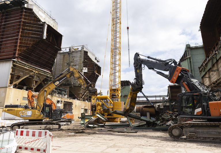 Für die Arbeiter auf der Baustelle bedeutet das eine sehr kleinteilige Arbeit. Bei dem Kesselhaus wurden beispielsweise beide der rund 40 Meter hohen Kessel durch Schweißbrennen in kleine Einzelteile zerlegt und abtransportiert. Sechs Monate haben die Arbeiten für den ersten Kessel gedauert, die Arbeiten am zweiten Kessel sind seit Ende Juli 2024 nahezu abgeschlossen. Rund 8.000 Tonnen Stahl sind im Kesselhaus insgesamt verbaut – eine Menge Arbeit also.