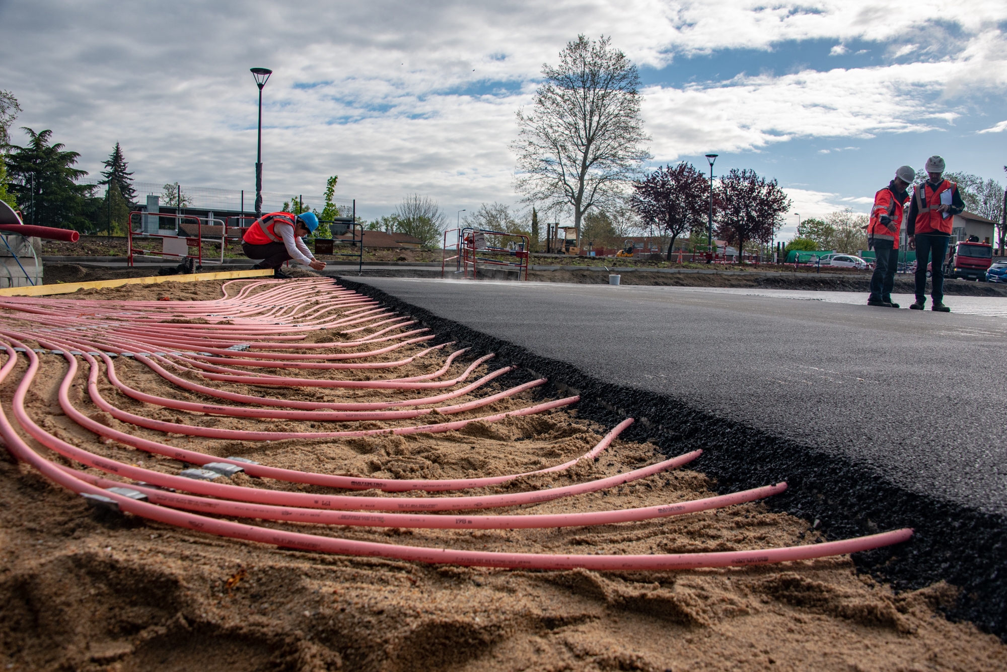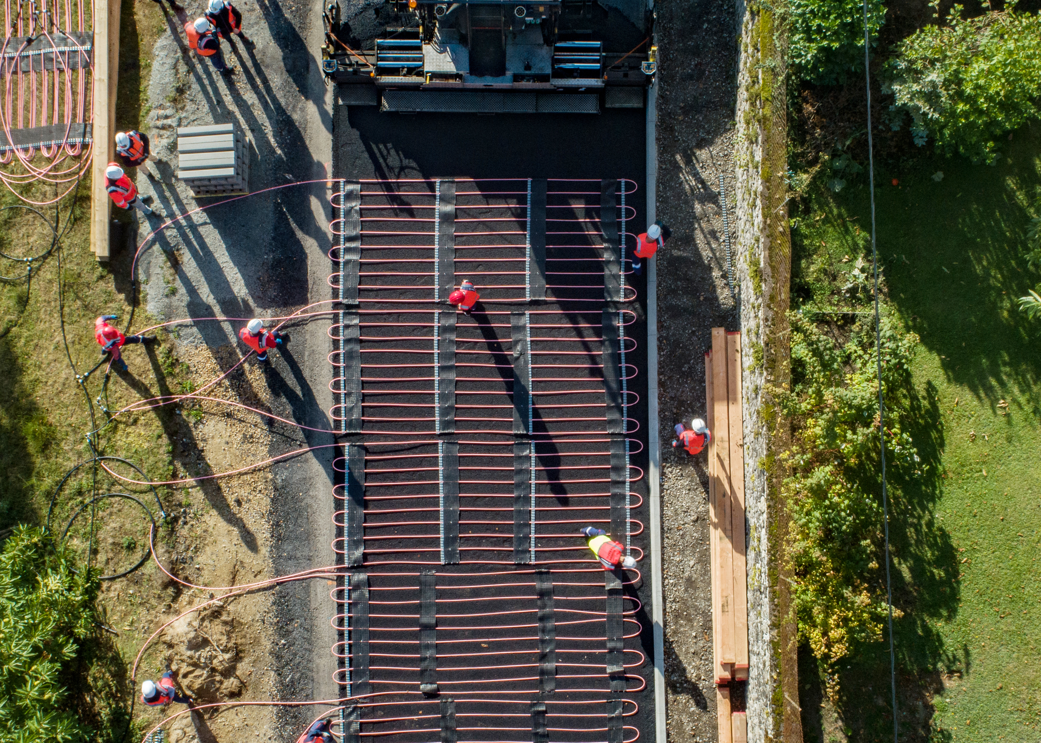 Die Energie kann dann später über ein Wärmepumpensystem in benachbarte Gebäude und Infrastrukturen abgegeben werden. Im Winter kann sie genutzt werden, um Verkehrsflächen und Gehwege von Schnee und Eis zu befreien. Im Sommer kühlt das System durch die Wärmegewinnung die Fahrbahnoberfläche ab und trägt zur Verringerung städtischer Wärmeinseln bei.